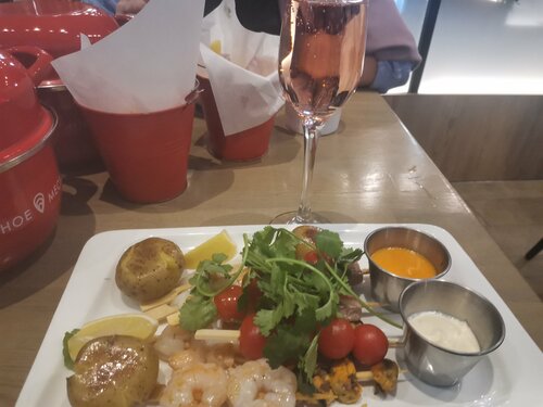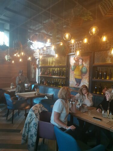 28.09.25 совершенно случайно заглянули в это заведение, буквально, на 1,5 часа, поскольку шли в театр. Ну, решили с подругой поболтать чуть-чуть. Очень приятно были удивлены улыбчивой и доброжелательной хостесс, которая нашла для нас свободный столик. Прямо не ожидала, что в воскресный вечер, после 5 часов, будет так много народа.... Очень любезные и компетентные официантки, так приятно, когда человек очень хорошо знает меню и может что-то посоветовать. . Заведение большое, есть даже второй этаж. Широкое меню, включая даже морепродукты и устрицы, которые живут в большом аквариуме. Я заказала гребешки с цветной капустой с соусом бешамель и фужер белого сухого вина, а потом и шарик клубничного мороженого. Подруга взяла салат из лосося с авокадо и коктейль "мохито". Все было очень вкусно! Посидели всего 1,5 часа, но впечатления остались самые хорошие. Цены средние, но уже ближе к высоким. Кухня и итальянская, и грузинская. Очень многие были целыми семьями, даже с детьми, но никто никому не мешал. При возможности, с удовольствием ещё посещу данное заведение. Процветания Вам!