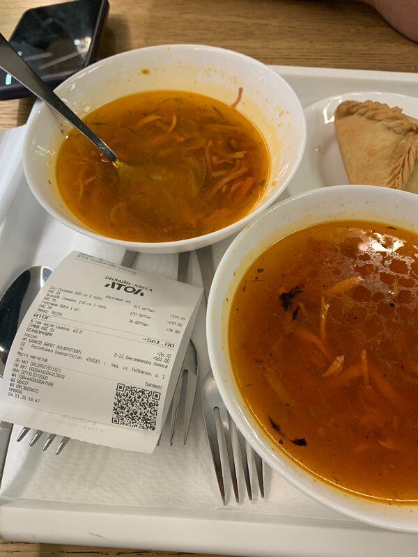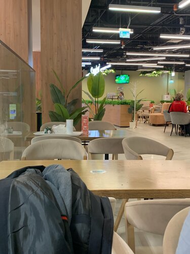 После пяти часов выбор еды кратно мал. За последний месяц-два очень сильно ухудшилось качество. Нерусский персонал который ни слова в ответ сказать не может, могут еще и грубо ответить. Ходим сюда только потому что есть детская игровая. Один раз брали грибной суп, очень понравилось, больше его в меню не застали хотя ходим не редко. Сегодня взяли солянку - жирная, вкуса нет, горелый черный лук, на терке огурцы , сосиски и дешевая колбаса за 175р, не стоит того. На столах грязно.
