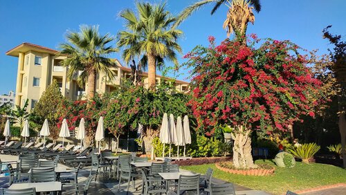 Отдыхали в этом отеле с подругой с 25 мая по7 июня 2024 года.Наш номер 906, находился на второй территории, жили в бунгало, На пляж шли медленно ,поэтому от номера до моря доходили за 8;минут.Пляж отличный, песочно- галечный, коралки не потребовались, вход в море удобный.Территория очень красивая, ухоженная, не очень большая, и от этого очень удобная, все под руками.Работники отеля очень доброжелательные, наши просьбы выполняли быстро, а мы и одеяло просили, зубные щётки и пасту, все нам принесли в номер.Питание в этом отеле выше всяких похвал, продукты качественные вкусные, блюда все отлично приготовлены.Каждый день готовили красную рыбу, каждый день есть тушёная говядина, много гарниров, на гриле вкусная индейка, шашлычки , вообще. этот отель по питанию совсем не уступает более дорогим отелям, в которых мы были.Напитки были, но мы пили только шампанское, холодное, с орешками и вишенкой.Аннимация была, но средненькая, были танцевальные коллективы, пригласили диджея, народ веселился.В этом отеле очень много народу, поэтому морепродукты были каждый день в салатах, но кто успел взять, тот и съел, больше не пополняют.Приходите в ресторан к открытию, тогда можно увидеть весь ассортимент Мороженое в этом отеле можно взять в кафе, оно открыто с11 до 18 часов, на ужине опять . оно есть.Мы отдохнули очень хорошо, отель отличный, спасибо работникам , что сделали наш отдых таким замечательным.Обязательно вернёмся в этот отель. Любовь и Валентина, номер 906.