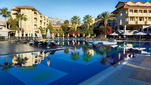 Отдыхала в этом отеле с 19 по 29;октября 2024 года. В этом отеле очень хорошая анимация, вечерние шоу, а после них танцы.В отеле было много отдыхающих из разных стран. Есть кофейня, работает с утра и до позднего вечера, кофе вкусный, есть пивной бар, работает с 14 до 23;часов, есть 3 вида бутылочного пива, есть безалкогольное, разливное, есть орешки и попкорн.На территории есть один главный бассейн, возле него бар, из импорта 3 вида алкоголя, а шампанское и вина местные. В кондитерской с 12 до 18 можно взять мороженое, пирожное,, выпечку, печенье. После обеда выпекали венские вафли с наполнителями.Завтраки в этом отеле хорошие, есть много видов сыров, даже мягкий, типа " Филадельфия"Но красной рыбы нет, ни на ужин, ни на обед, ни на завтрак, морепродукты один раз в неделю. Трудно назвать место для приема пищи " РЕСТОРАНОМ".На ужин не хотелось вообще ходить, еда однообразная, , даже ни разу не пожарили котлеток из говядины на гриле, ,Турция славится этим блюдом, доходило до смешного, мясо с картофелем, а там одна картошка, Но в этом отеле очень хорошие десерты, особенно чизкейк, много фруктов, одного винограда было 3 вида, хурма, дыня, арбуз,.яблоки все и не перечислить.Номера в этом отеле маленькие,.но удобная кровать, отличный матрац.В холодильник каждый день пополняли. сладкие газированные напитки, сок,.вода, пива нет. Рядом с отелем есть магазины, аптеки, все очень близко.В этот отель приезжают ни по одному разу, были люди, приехавшие сюда в 10;раз, их даже приветствовали на вечернем шоу, были те, кто приехал в пятый раз.Я отдохнула очень хорошо, хотя приехала одна.Спасибо работникам отеля за хорошую работу.Желаю всем всего самого наилучшего.Сама второй раз не приеду, выбираю всегда разные места. В мае того же года отдыхала в "Квинс Парк "ГейнюкОтзыв написала.Спасибо всем!