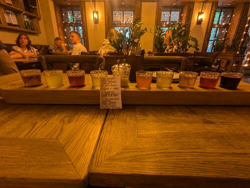 Крайне рекомендуется выпить сет из 10 настоек, много необычных и приятных вкусов. А особенно понравилось коктейльное меню и сами коктейли очень классные, в общем место очень стоит посетить