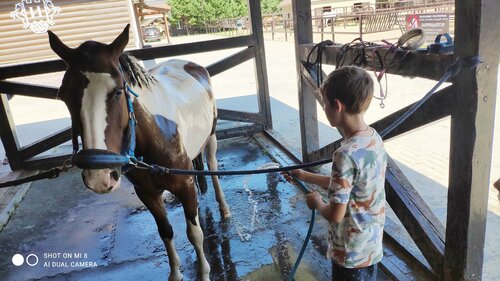 Отдыхали в комплексе большой компанией 8 взрослых и 4 детей. Бронировали три номера заранее, а также заказали экскурсию по конюшне с катанием детей на лошади. А также заказали баню на 2 часа. Программа была насыщенныой. Тогда по порядку. 1. Ресторан. Мы много путешествовали, поэтому знаем, что разместиться большой компанией вместе в ресторанах проблематично ,а нас семья из 12 человек. Официанты оперативно сдвинули столы, организовали максимально удобно. Репект! Достоинства: хорошее меню, красивая подача, цена приемлемая , вкусно. Очень доброжелательные официанты. Креативные и молодые, очень хорошо нас обслуживала девушка Маргарита. Недостатки: некоторые блюда готовились очень долго. Но нас сразу предупредили о задержках, т.к. в банкетном зале проводилась саадьба. Мы отнеслись с пониманием. Номера : удобные, просторные. Матрасы и подушки удобные. Спать комфортно. В номере стандарный набор - з.паста, щетка, гель, мыло. ТВ, холодильник, сейф. Мебель новая, дизай стильный. При оформлении, на рецепшин , удовлетворили все наши просьбы и пожелания. Все замечательно. Баня: Это "песня"!! Всем очень понравилась. Мы потом еще прибавили время. Парилка замечательная. Бассейн маловат, но довольно глубокий. Дети были в восторге. Замечательная задняя веранда. Но самое великолепное - это парилка. И ,наконец, экскурсия: Её нам проводила девушка Виктория. Она нас провела по всей конюшне, очень подробно и интересно рассказала о клубе, профессионально и с любовью рассказала о лошадях. Катание на лошадке вызвало большой восторг у детей. Виктории большое спасибо за интересный рассказ, профессионализм и терпение. Отдохнули замечательно, спасибо всем работникам клуба. Если, и были недостатки, при хорошем отдыхе и настроении их не замечаешь.