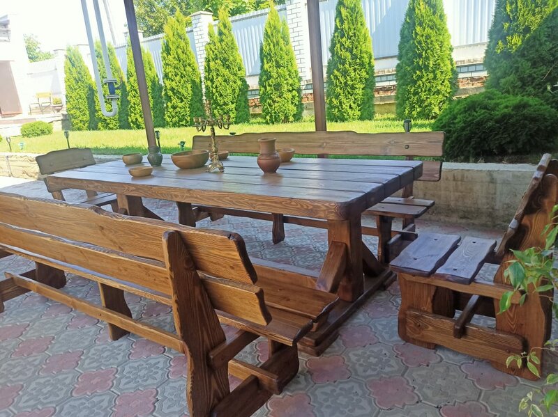 Заказывали как подарок ко Дню рождения сестры, нужно сказать, что подарок шикарный, с одной стороны мебель выглядит брутально и основательно, а с другой стороны столько в ней теплоты, русского домашнего уюта с очень удобной посадкой. Ну, а как она вписалась в ландшафт двора, видно на фото. Доставка быстрая, в обещанные сроки. Город Саратов передает вам огромное спасибо за ваш труд и креативность!