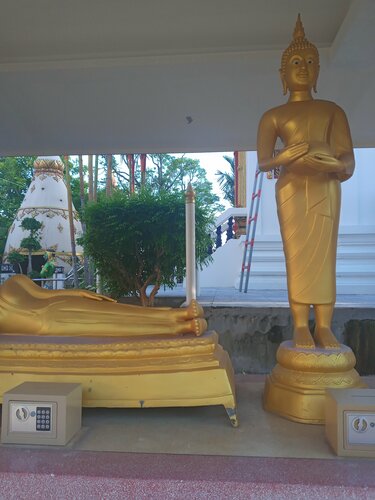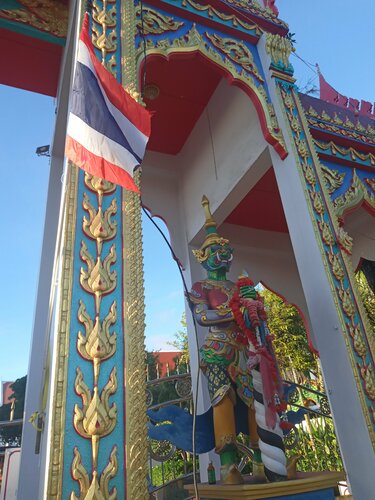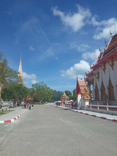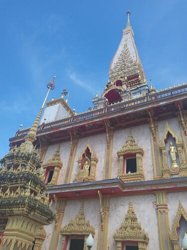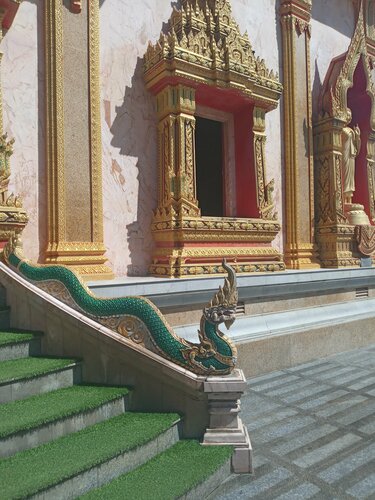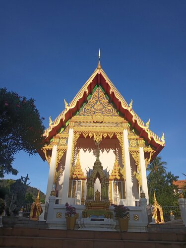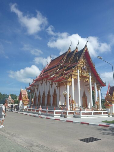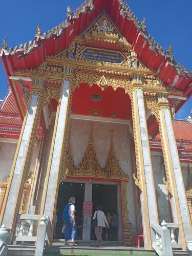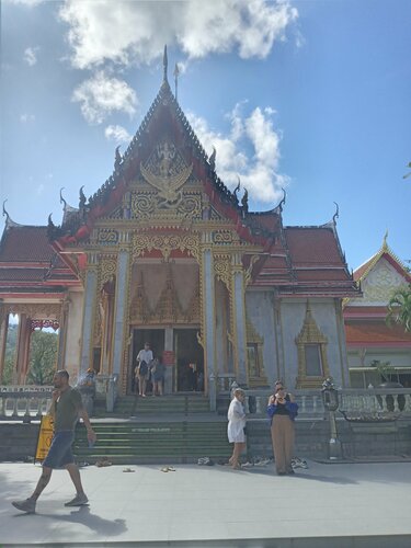 Красивый храм, есть несколько зданий, есть гонг/диск для проверки кармы. И там же проводится вечерний рынок по вторникам и пятницам.