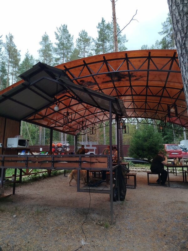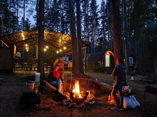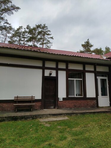 Останавливались в октябре на одну ночь в номере S1 с сауной. Специально подбирали вариант в окрестностях Печор / Изборска, чтобы была сауна погреться холодным октябрьским вечером, а также мангальная зона. Не пожалели. Номер расположен в домике на 3 номера, также в домике расположился ресторан. Что удобно, в номере отдельный вход с улицы, приятно выйти из сауны остудиться среди соснового бора! Мангальная зона на несколько номеров, но в октябре постояльцев мало, никто никому не мешал и не смущал. В стоимость включен континентальный завтрак (на выбор русский, английский, скандинавский или детский вариант). Ресторан работает до 21 часа, удобно, никуда не нужно ездить кушать. Территория ухоженная, парковка большая охраняемая. Обустроенный пляж, лежаки, передевалки, бар (в октябре уже не работал). На берегу встретили семью лебедей - мама, папа и шестеро лебедят. По пути следования в Печоры пост погранзаставы, паспорта проверяют у всех, со стороны Пскова проезд свободный.