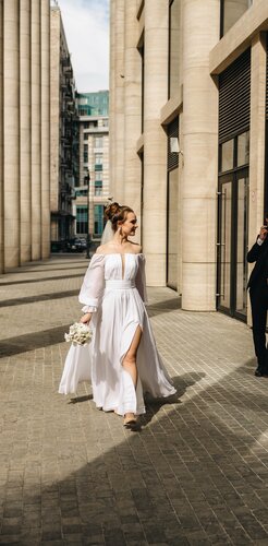 Огромное спасибо Наталье за тёплую атмосферу и невероятное настроение во время подбора платья! Это был первый салон, в который я записалась, запрос на платье был совершенно иным, но, Наталья профессиональным взглядом увидела, что мне подойдёт больше всего и предложила данный вариант. И я влюбилась!! Будучи в других салонах, я могла думать только об этом платье! 🥰 Здесь же мы подобрали фату и серьги. А также по запросу сделали на платье разрез по ноге. Сама свадьба проходила в мае, но воспоминания о замечательном времени подготовки к ней до сих пор не отпускают. Спасибо, что стали важной составляющей предсвадебной суеты! ❤️