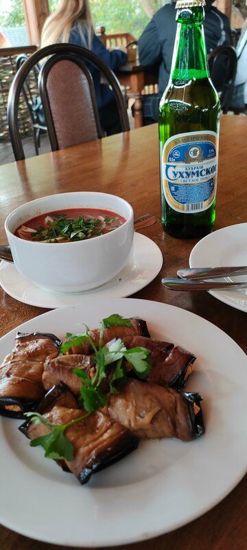 Вежливый персонал, быстрое обслуживание, национальная абхазская кухня. Мой заказ: солянка по-абхазски, рулетики из баклажанов, лодочка - с пылу, с жару - всё было очень вкусно!
