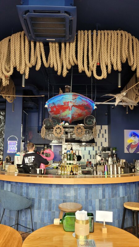 Звезду сняла за настойки... все ягодные как будто с добавлением лимонной кислоты, вкус невыраженный. Закуски норм - бутеры, селедка, сало... Хорошая атмосфера, приятные бармены, можно посидеть на улице. Туалет маленький, но чистый!