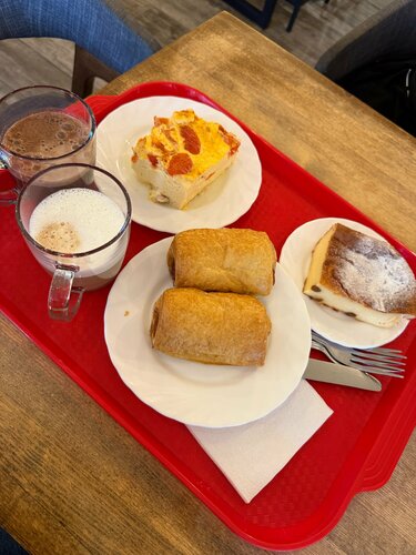 Аккуратная уютная кофейня, есть столики посидеть внутри, можно взять на вынос. Выбор варенья, компотов, закруток. Есть пирожные штучные и есть целый торт, можно оформить заказ на праздник. Напитки есть и кофе, и лимонады, и милкшейки (но к вечеру милкшейк сделать не смогли, не было ингредиентов) Все купленное оказалось вкусным.