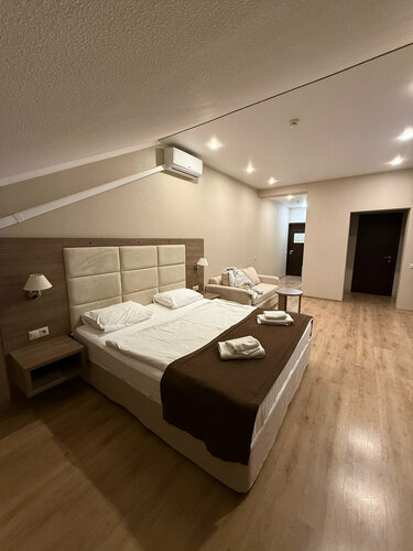 Заселялись зимой, удачное расположение для посещения рэд арены. В отеле приветливый персонал, три этажа. На третьем этаже есть массажные кресла «ямогучи». Номер мансардный, состояние хорошее. Вид из окна на рэд арену. По соседству магнит, пятерочка, кофейни. На втором этаже находится кафе- столовая. Выбор достаточный, но ужин не очень понравился, уже подостывшее было. А вот завтрак шикарный, есть и яйца в любом виде, куча выпечки, блины с любой начинкой. Есть предупреждение, что может встретиться клоп, сначала напрягло, но так как никого не встретили, то впечатление не испортилось. Но рекомендую не давать детям читать объявления))