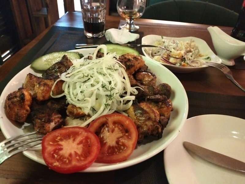 Еда неплохая сказала бы. По сравнению с некоторыми кафе вкусно и чисто. Шашлык недорогой хороший (но в последний раз принесли почему-то холодным). Персонал вежливый дружелюбный,всегда быстро реагирует. По выходным бесполезно идти на обум, толпа желающих. В общем хорошее сочетание цены, вкуса и атмосферы.