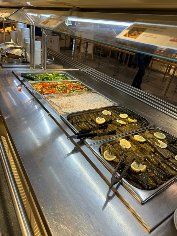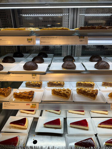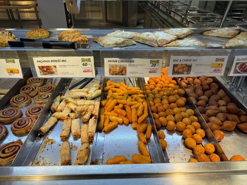 Приятно удивилась ассортименту в ресторане Икея - были как и знакомые позиции (фрикадельки, фри, овощи, соусы, миндальный пирог и прочее), так и турецкий колорит (суп яйла, буреки, десерт типа пахлавы и другое) Фрикадельки с картошкой и черничным джемом - по вкусу как в старые добрые времена! Кофе точь-в-точь такой же :) и безлимитный Из минусов: в будни днём почти полная посадка, шумно. Быстро поесть и пойти дальше. Всем ностальгирующим по фрикаделькам - привет!