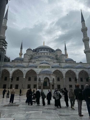 Голуба́я мече́ть, или Мече́ть Султанахме́т (тур. Sultanahmet Camii), — первая по значению мечеть Стамбула. Насчитывает шесть минаретов: четыре, как обычно, по сторонам, а два чуть менее высоких — на внешних углах. Считается выдающимся образцом исламской и мировой архитектуры. Мечеть расположена на берегу Мраморного моря, в историческом центре Стамбула в районе Султанахмет, напротив Айя-Софии. Мечеть является одним из символов города. Грандиозно!