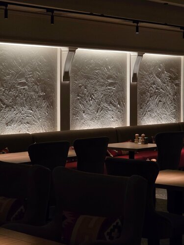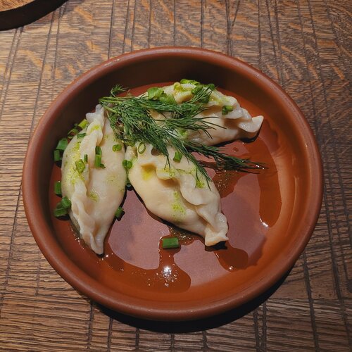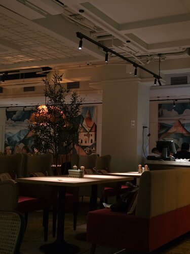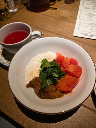 Новое место в Кстово :) Красивый интерьер, приглушёный свет создаёт ощущение того, что в ресторане ваш столик самый особенный :) Официанты быстро сориентировали по позициям меню, здесь можно попробовать как кавказскую, так и европейскую/русскую кухню. Один из самых приятных моментов - отсутствие громкой тематической музыки, атмосфера спокойная. Заказала салат с сыром страчателла, томатами зеленью и баклажанами - очень вкусно! Свежий вкус овощей, нежный и сливочный сыр, ммммм. На горячее котлета из Щуки на подушке из картофельного пюре. Сама котлета супер, а вот пюре немного "перебили" блендером и получился почти клейстер со вкусом картофеля. Так же пили чай с гранатом - сироп не приторный/химозный, а наоборот - освежающий, приятный напиток. Отлично провели время, вернёмся ♡