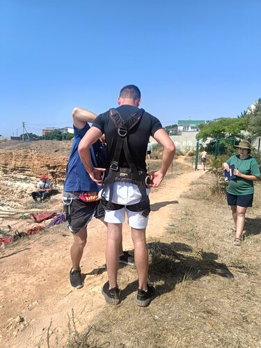 Крутые наставники знающие свое дело, впереди была огромная очередь,что говорит о качестве и желании людей поучаствовать. Эмоции непередаваемые, наверх поднимают на верёвке сразу же после прыжка,успеваешь по висеть и насладиться видом )