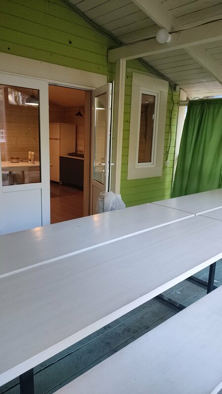 Отмечали день рождение, очень нам всем понравилось. Сидели на веранде, погода была отличная, делали шашлык. Для него всё есть шампуры, решётка. В домике есть вода, холодильник. Большой телевизор, колонка, караоке.