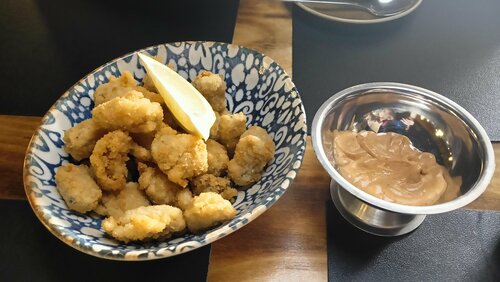 По еде, рамён, мидии во фритюре и т.д. всё было вкусно, в помещении прохладно, персонал замечательный. Но интерьер немного устал, у некоторых люстр отклеились верёвки, у некоторых бумажная обмотка.