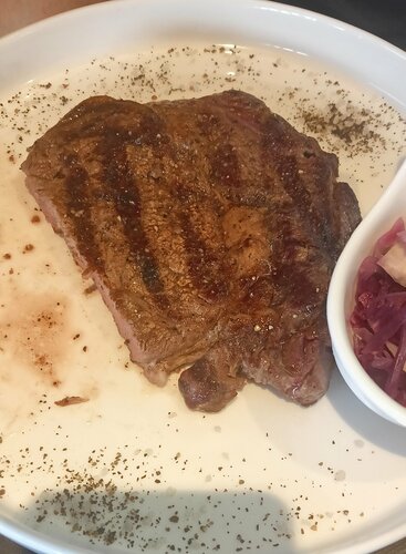 В помещении уютно, есть второй этаж, туалет чистый на первом этаже. Тар-тар из говядины вкусный, а также грибы, салат и т.д. Персонал приветливый. За что 3 звезды, смутила толщина стейка рибай, по стандарту минимум 2 см, а так это просто кусок вкусной отбивной, толщиной в 5мм. Стоимость в 2000р за 250гр себя не оправдывает.