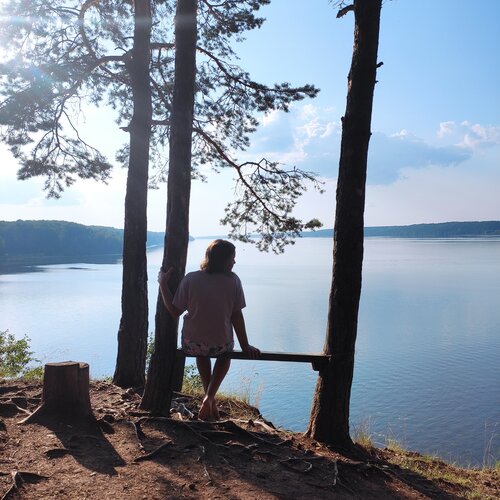 Приезжали на выходные с детьми. Очень понравилось, хороший и современный ремонт, чисто, доброжелательный персонал, на территории мангалы, беседки. Вкусные и бюджетные завтраки, каши варят на коровьем молоке)). До пляжа идти метров 700 по деревенской улице, потом крутой спуск к реке, пляж небольшой. Ходили и на более дальний пляж под названием "мыс любви", виды открываются на Волгу умопомрачительные. Но спуск с холма очень крутой, именно от смотровой площадки, можно идти по обычной дороге, обогнув мыс.
