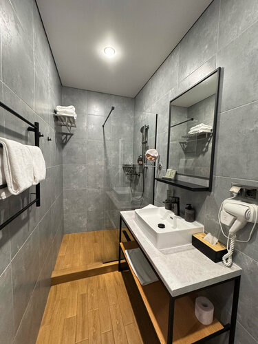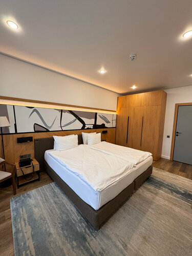 Давно хотели побывать в этом месте. Отель с красивыми фасадами, напоминающими чем-то домики на площади в Швеции. Номера просторные, но не соответствуют канонам 5*. Лейка душа течет, зеркало над раковиной поцарапанное, нет тумбочек (вместо них просто деревянные кубы нефункциональные), отсутствуют столовые приборы, дешевый растворимый кофе и чай в пакетиках, пустой холодильник ( нет мини бара), грязный ковролин, не рабочий телефон. Самое основное, что стоит поправить - коммуникация персонала на ресепшен с гостями, полное отсутствие правил этикета и стандартов сервиса: грубили, уходили от ответа, не очень красиво вели себя. При этом неплохая спа зона с несколькими банями и бассейном. Здорово, что есть запись и контроль над количеством человек в спа. В целом неплохо, но есть что улучшать до 5*