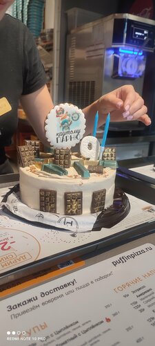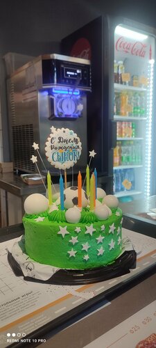 Бомба ! Не успела заказать перед ДР сына пришлось импровизировать . Купила 2 тортика и украшения . Зацените как получилось. А вкус у тортиков Бомбический особенно зелёненький с малиной , грушевый брали он суховат , но не менее вкусный . Т. Д пасибки