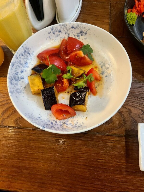 Уже уверенно могу сказать: ресторан и сама сеть очень сильно испортились. Раньше постоянно заказывали доставку и посещали разные рестораны. Всегда было вкусно, добротно. Официанты были разные, но всегда они были в контакте с посетителями. Что сейчас: официанты просто разносят еду, не более. Добиться от них внимания невозможно, потому что теперь это, видимо, не входит в их обязанности. И если твой заказ не несут уже 2 час, то никто тебе ничего по этому поводу не ответит. Сиди и жди наедине с планшетом на столе. Но это полбеды. Еда стала просто откровенно невкусная. Гораздо большее удовольствие от еды я получу в KFC. Сделано «на отвали». Заказали салат с жареными баклажанами - результат можно видеть на фото. Это просто смешно. Кстати, баклажаны были не прожарены. То есть я прям вижу как человек нарезал полбаклажана, один скудный помидор и кинул в тарелку. И стоит это 390 рублей, серьезно? Это сервировка? Цыпленка в кисло-сладком соусе я не доела (ждала его больше часа). Отвратительно сварен рис, всё остальное тоже напоминает какую-то завалявшуюся несвежую еду, приправленную майонезом. После доставки была надежда, что в ресторане лучше. Но после очного визита стало ясно - мы наблюдаем закат некогда классной сети ресторанов. Печально. Не рекомендую к посещению тем, кто, как и я, раньше любил это место. Вы будете разочарованы.