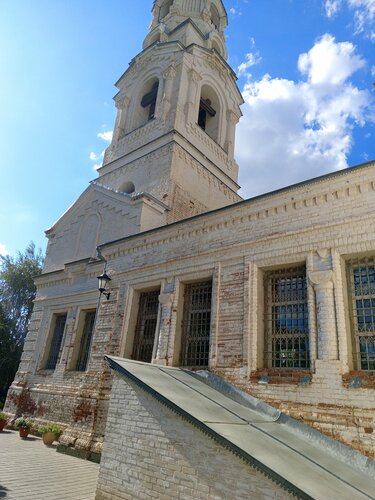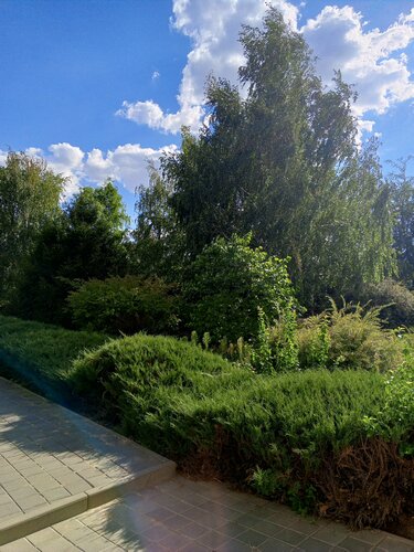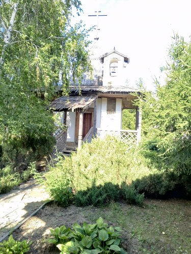 Очень красивый двор, много зелени, цветов, красивая, старинная церковь, в саму церковь не попали, т.к. было закрыто.