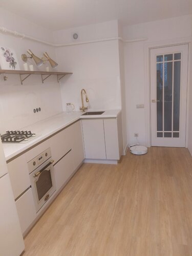 Мне очень хотелось нестандартную небольшую кухню без верхних шкафчиков. Спасибо большое Алёне. Она меня поняла, помогла доработать проект, а также выбрать цвета и материалы. Объяснила, где можно и где не стоит экономить. Была на связи все время. Кухня получилась лёгкой и воздушной, уютной и приятной на ощупь. Выглядит не совсем как кухня даже, как я и хотела. И достаточно места для хранения.