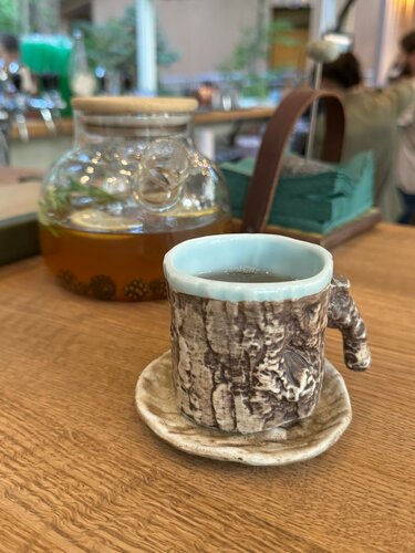 Для меня очень необычное место, так как в Москве была в гостях. Ресторанчик у воды, утопающий в зелени… Очень вкусный чай с шишками 😍