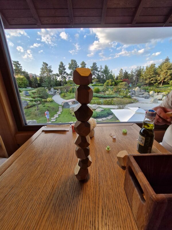 Очень приятное место с вкусной японской едой. Можно купить японские напитки и сладости на кассе. Два этажа, на втором этаже столики с красивым видом на парк. Построили башенку в игре Туми-Ишу, пока ждали заказ;)