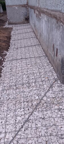 Отмостка у дома Созидателей 44 ремонтируется не грамотно.Арматурная сетка нанесет вред.Со временем она будет корродировать и разрушать бетон.Арматура применяется при нагрузках на изгиб, это азбука железобетона.Не предусмотрена гидроизоляция цокольной панели и защита от фильтрации цементного молочка в щебень и песок.Не предусмотрено железнение поверхности отмостки.Достаточно было втрамбовать в грунт щебень, затем уложить с уклоном геотекстиль ( пленку) и бетон.