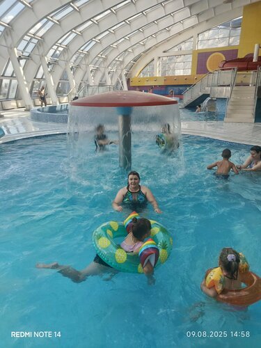 Хороший аквапарк для маленьких детей, сауна не плохая, понравилась. Просторная стоянка, через дорогу кафе, где можно перекусить. Однозначно вернёмся еще