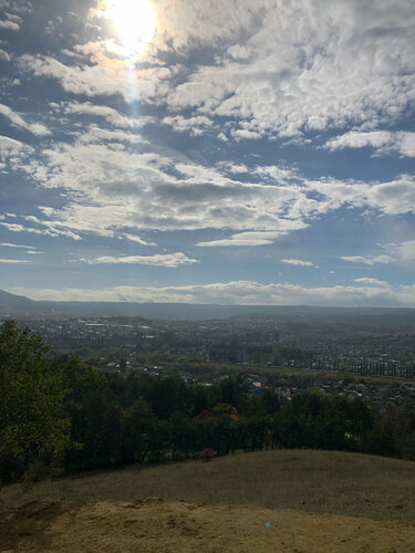 Это просто чудо! Поднимаешься на вершину, город, Эльбрус! Красиво! Дух захватывает!