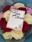 Заказывал букет на 51 розу. Букет шикарный, выглядит 1 в 1 как на сайте. Девушка была довольна. Так же хочу сказать спасибо, что добавили несколько цветов в подарок. Оформлял доставку, указав номер телефона. Перед отправкой сфотографировали букет, чтобы подтвердить. С девушкой созвонились и доставили без всяких проблем. Отдельное спасибо за консультацию перед оформлением заказа (делал это впервые). Но все подсказали и объяснили. Однозначно 5 звезд.