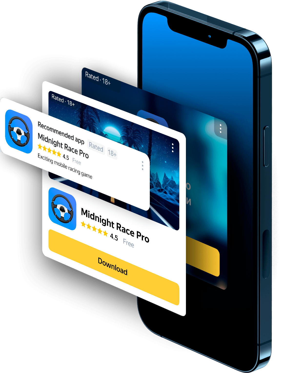 Yandex's smart algorithms will show your ad only to the most active and engaged audience that is interested in the app. No fraud and no fake installs