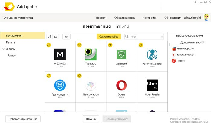 Если среди предустановленных в программе пакетов приложений нет нужного вам тематического пакета, вы можете обратиться к руководителю проекта Addappter в вашем магазине или создать пакет самостоятельно. Пакет, созданный руководителем проекта, будет доступен для всех сотрудников. Самостоятельно созданный пакет хранится локально и может устанавливаться только с вашего компьютера.