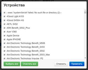 Чтобы исключить из отчета определенные салоны, регионы или устройства, нажмите кнопку с названием параметра слева сверху.