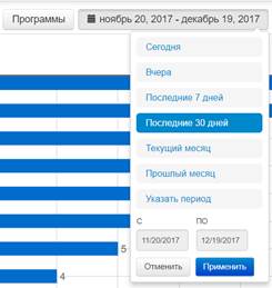 Выбрать период, за который нужна статистка, можно в блоке над графиком сверху.