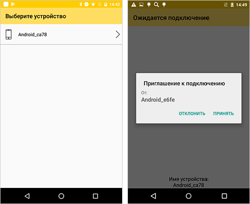 На устройстве, с которого нужно перенести данные, отобразится список доступных для подключения устройств. Нажмите на название устройства–получателя данных и при необходимости разрешите подключение на устройстве–получателе данных. Дождитесь соединения устройств.