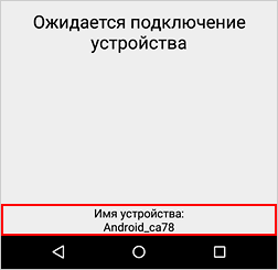 Подключите устройство–получатель данных к компьютеру. На устройство установится служебное приложение Addappter Transfer, оно автоматически запустится в режиме ожидания подключения. Внизу экрана приложения отобразится имя устройства, его нужно запомнить.