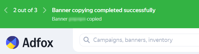 The selected banner will be copied to the ad campaign. To add banners from another campaign, repeat the process.