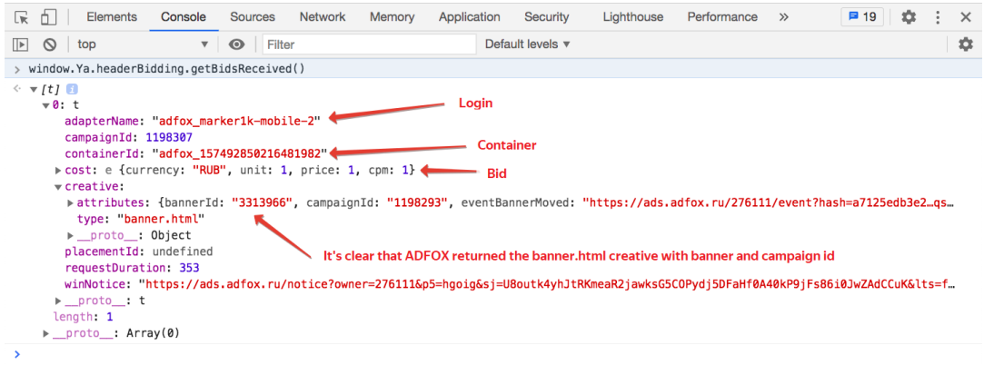 Make sure that a creative with a bid is received for the login and the container from Step 1.