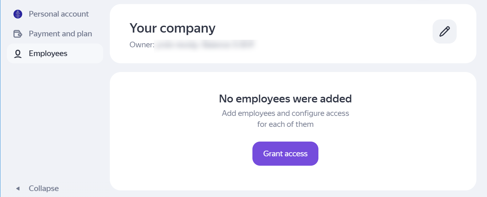 Go to Employees and click Grant access. The Access to the organization window will open.