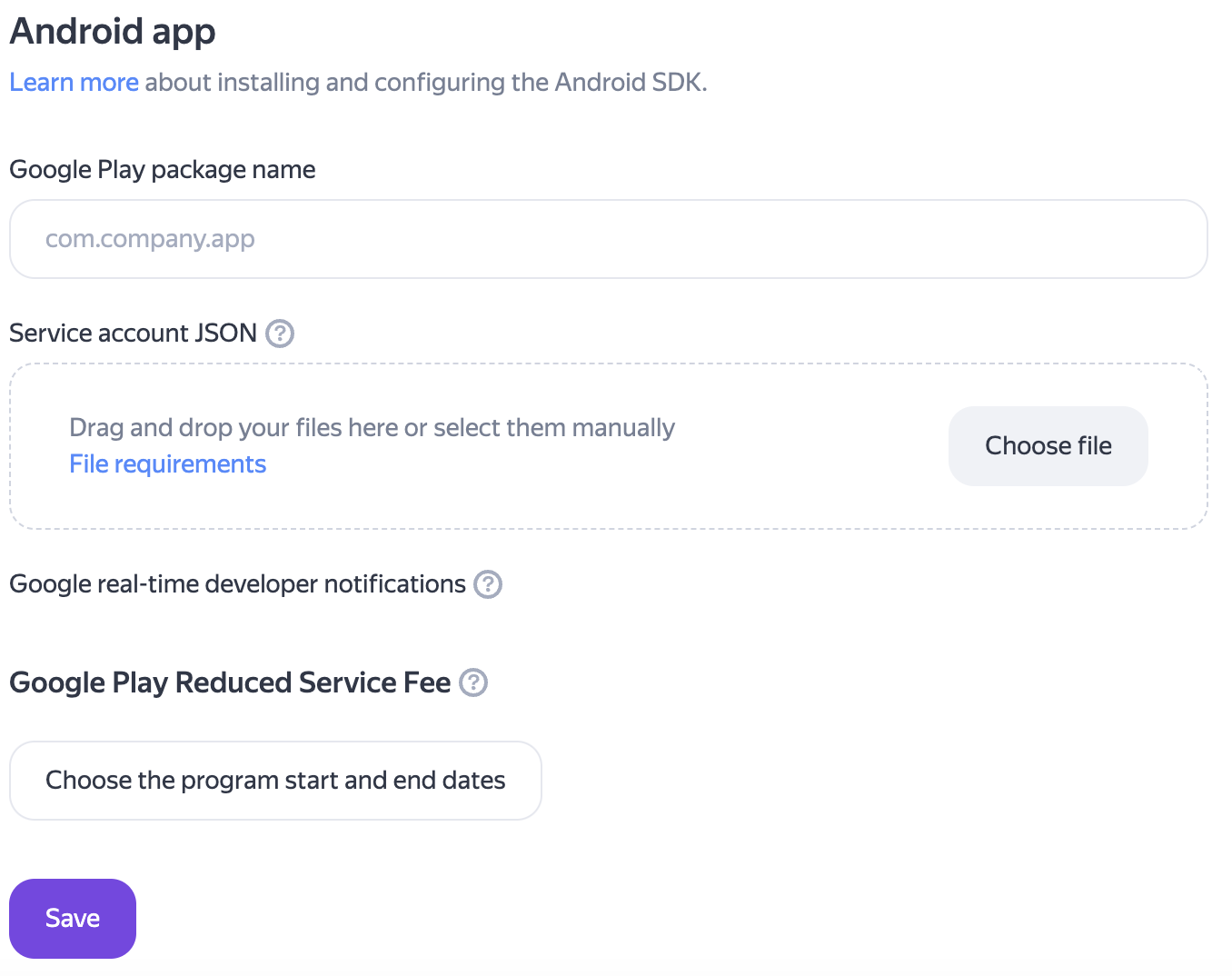 To track subscription status updates, create and upload a service account JSON file to AppMetrica. For information on how to create a JSON file, see the Apphud documentation.