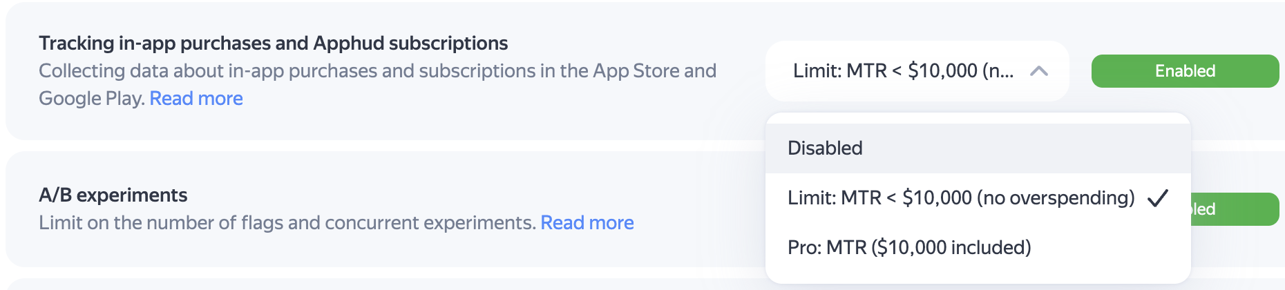 Tracking via Apphud is a paid feature available with the Custom and Pro plans. This option comes with a free MTR limit of $10,000.