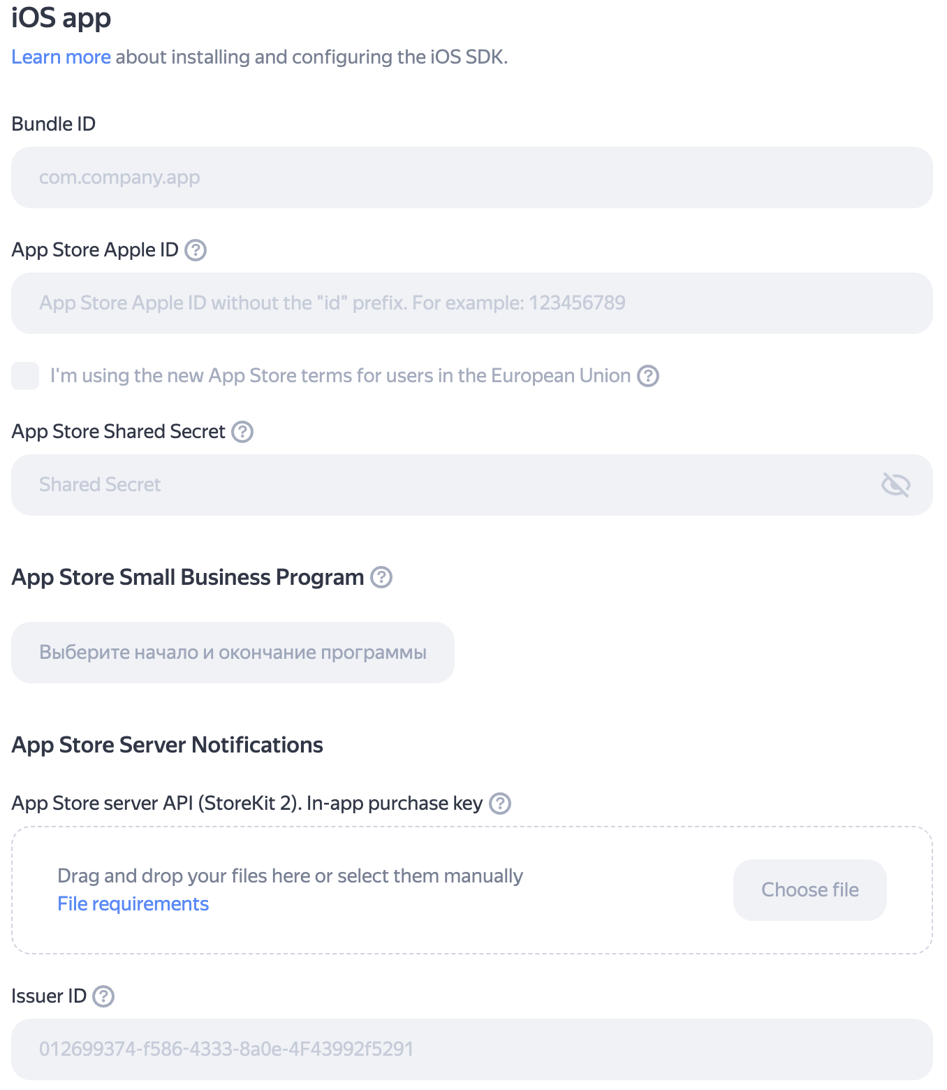 A private key from App Store Connect that you need to upload to AppMetrica. For information on how to generate an in-app purchase key, see the Apphud documentation.