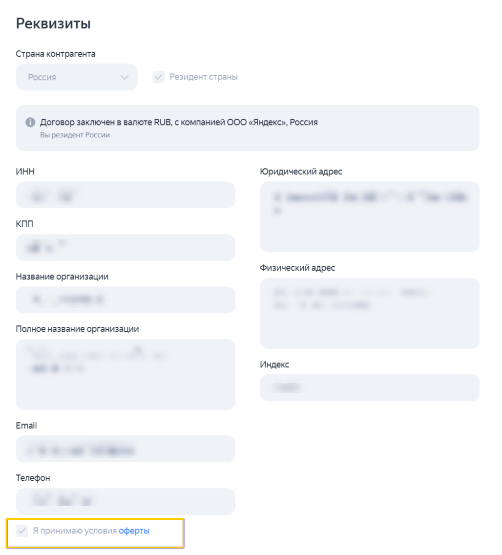 Ознакомьтесь с офертой и включите опцию Я принимаю условия оферты.
