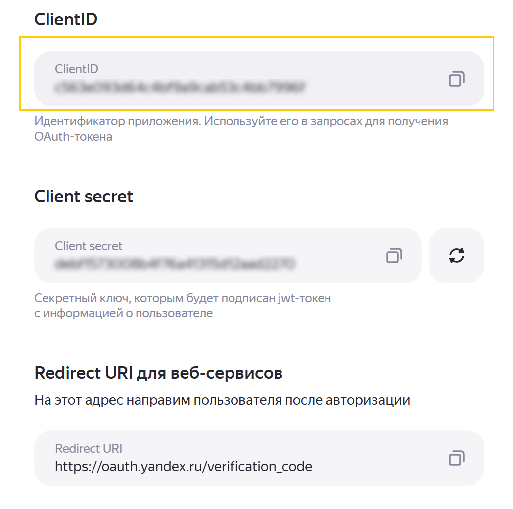 6. Скопируйте идентификатор вашего приложения в блоке ClientID.