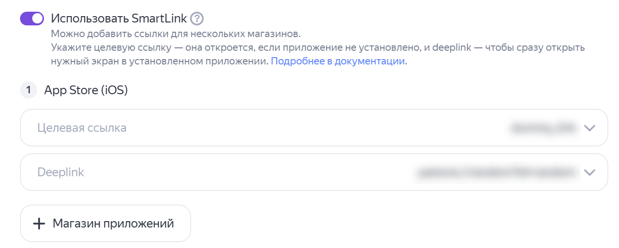 Если рекламный партнер просит использовать прямую ссылку на платформу и deeplink, опцию SmartLink нужно отключить.