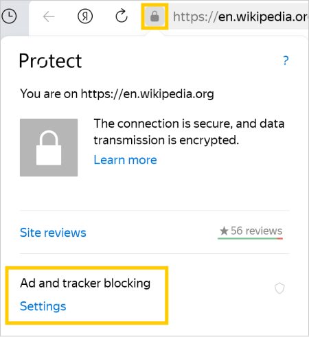 If the page you want to visit contains elements from infected sites, Yandex Browser blocks them.